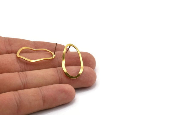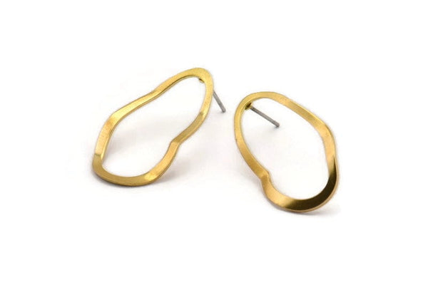 Brass Drop Earring, 10 Raw Brass Wavy Drop Stud Earrings With 1 Hole (28x16x0.80mm) D858 A4650