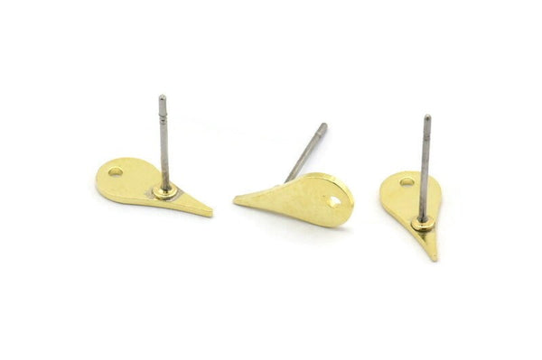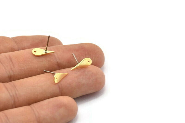 Brass Drop Earring, 12 Raw Brass Drop Shaped Stud Earrings With 1 Hole (12x6x0.80mm) M03283 A2619