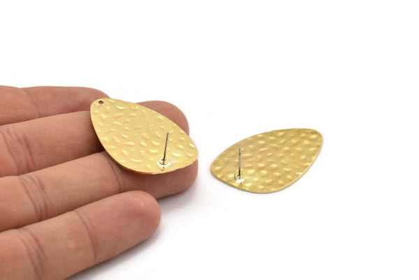 Brass Drop Earring, 2 Hammered Raw Brass Drop Stud Earrings With 1 Hole (37x26x1mm) D1151 A6037