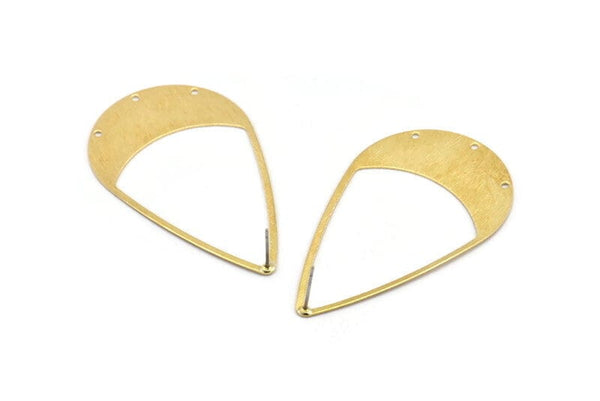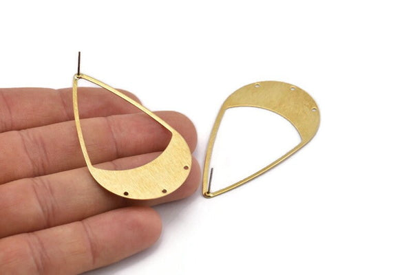 Brass Drop Earring, 4 Raw Brass Textured Drop Stud Earrings With 3 Holes, Findings (59x35x0.60mm) D0719 A1449
