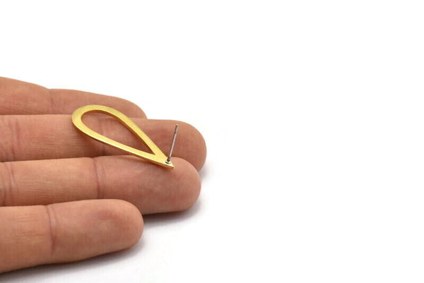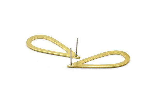 Brass Drop Earring, 6 Raw Brass Drop Stud Earrings (36x16mm) BS 1312 A1121