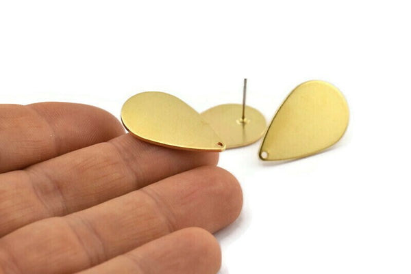 Brass Drop Earring, 6 Raw Brass Drop Stud Earrings With 1 Hole (26x17x1mm) D1368 A1834
