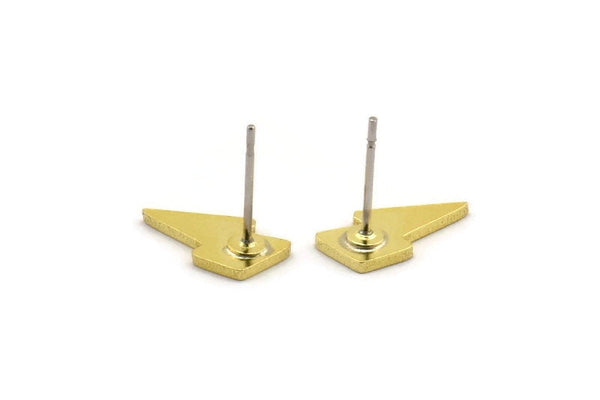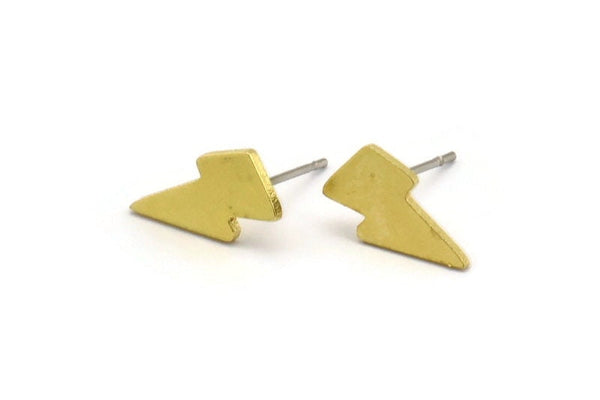Brass Earring, 12 Raw Brass Lightning Bolt Stud Earrings (12x7x1mm) A4189