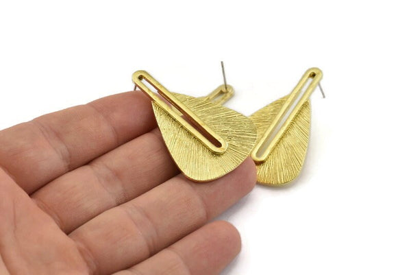 Brass Earring Post, 2 Posts Raw Brass Textured Earrings (42x28x1mm) N1084
