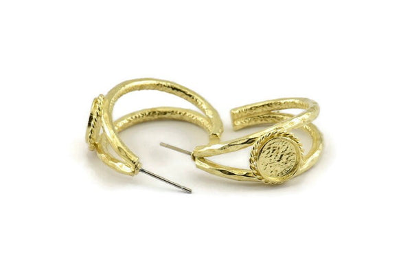 Raw Brass Textured Earrings, Pad Size - 8mm