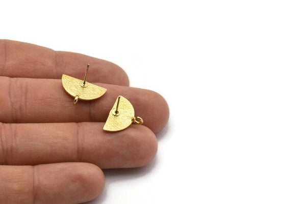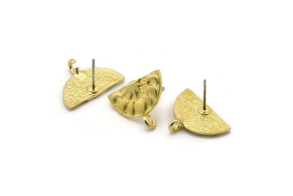 Raw Brass Semi Circle Moon Phases Shaped Earrings Stud With 1 Loop