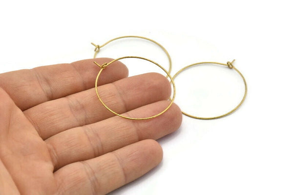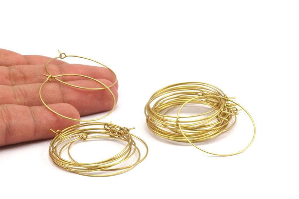 Brass Earring Wires, 50 Raw Brass Earring Wires (35x0.7mm) Bs 1081