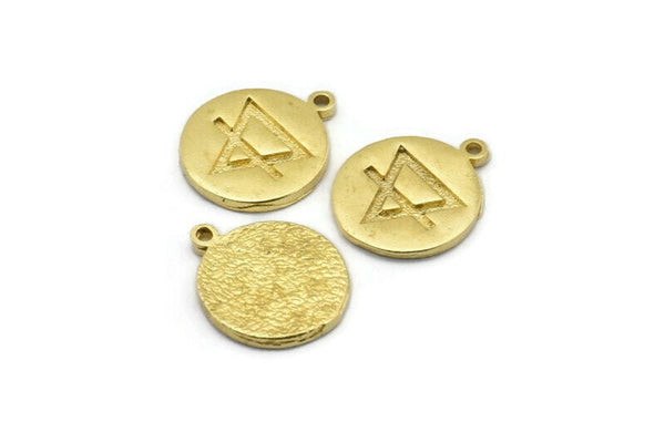 Brass Element Charm, 4 Raw Brass Earth Element Symbol Charms With 1 Loop (17x14x1.5mm) N2025