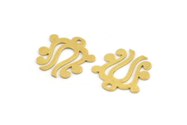 Brass Ethnic Charm, 24 Raw Brass Ethnic Motif Charms With 1 Hole, Earring Charms (17x16.5x0.60mm) A5435