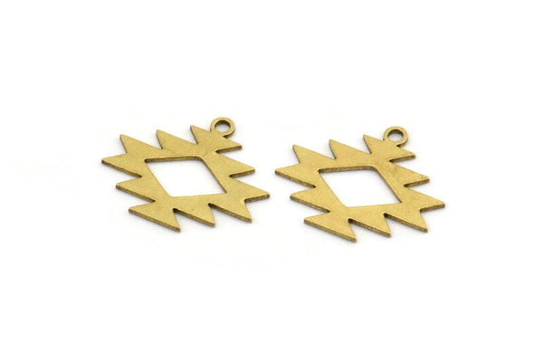 Raw Brass Ethnic Motif Charms With 1 Loop