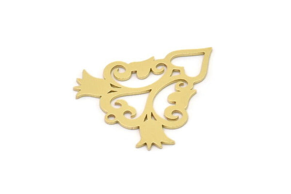 Brass Ethnic Charm, 6 Raw Brass Ethnic Motif Charms With 1 Loop, Tulip Charms, Earring Charms (26x25x0.60mm) SMP0866