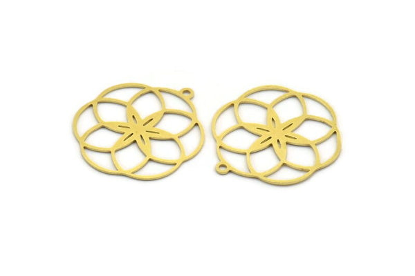Brass Ethnic Charm, 8 Raw Brass Ethnic Motif Charms With 1 Loop, Earring Charms (28.5x25x0.60mm) A6116