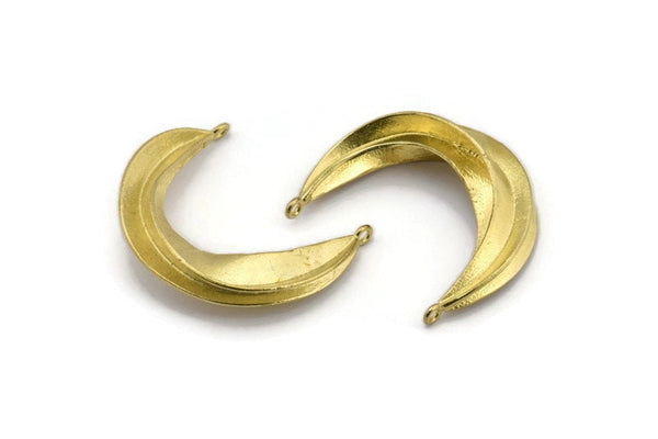 Brass Ethnic Pendant, Raw Brass Crescent Pendants With 2 Loops, Earring Findings (37x32mm) N0860