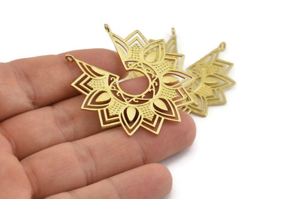 Raw Brass Ethnic Motif Pendants With 2 Loops