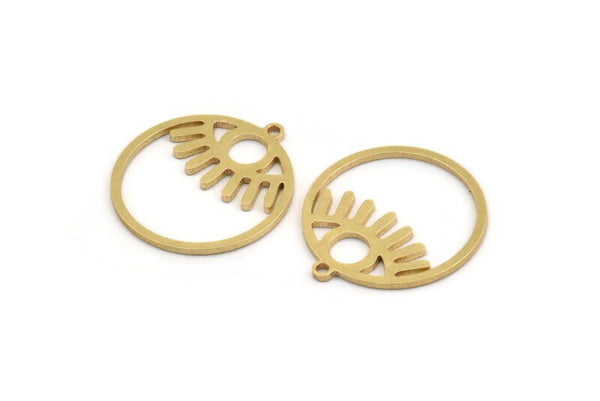 Brass Eye Charm, 10 Raw Brass Eye Patterned Round Shaped Charms With 1 Loop, Earring Charm Findings (26x24x1mm) A5242