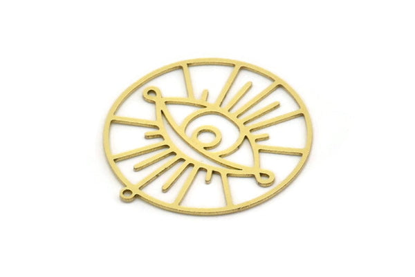 Brass Eye Charm, 2 Raw Brass Eye Patterned Round Shaped Charms With 1 Loop, Earring Charms, Findings (34x32x0.60mm) SMP0685