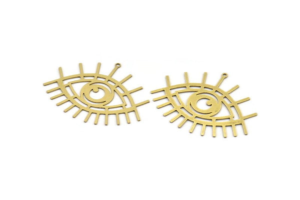 Brass Eye Charm, 6 Raw Brass Eye Shaped Charms With 1 Loop, Earring Charms (35x47x0.60mm) A3110