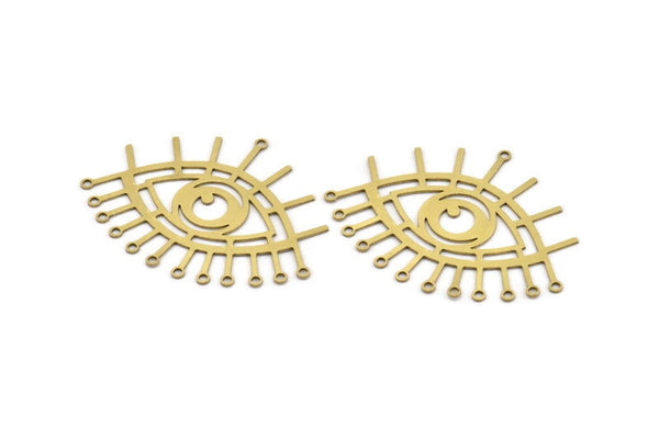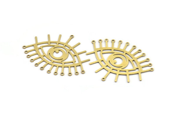 Brass Eye Charm, 6 Raw Brass Eye Shaped Charms With 13 Loops, Earring Charms (37x50x0.60mm) A3103
