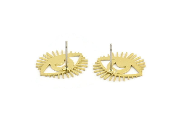 Brass Eye Earring, 10 Raw Brass Eye Shaped Stud Earrings (17x18x0.60mm) A3741
