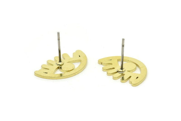 Brass Eye Earring, 8 Raw Brass Eye Shaped Stud Earrings (18x11x0.80mm) A2988