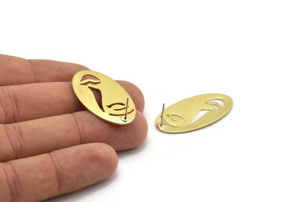 Raw Brass Face Stud Earrings