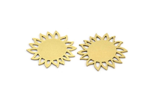 Brass Flower Charm, 12 Raw Brass Sunflower Shaped Charms, Earring Charms (21x19x0.60mm) A3596