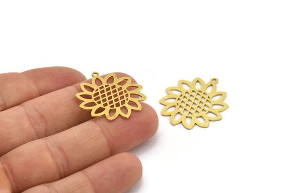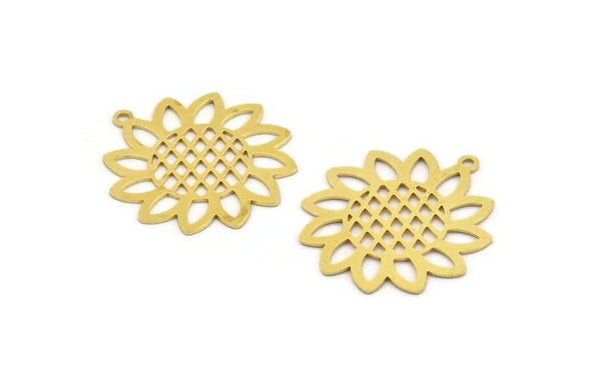 Brass Flower Charm, 8 Raw Brass Sunflower Shaped Charms With 1 Loop, Earring Charms (28x26x0.60mm) A4985