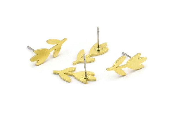 Brass Flower Earring, 10 Raw Brass Tulip Flower Shaped Stud Earrings (18x8x1mm) A3240