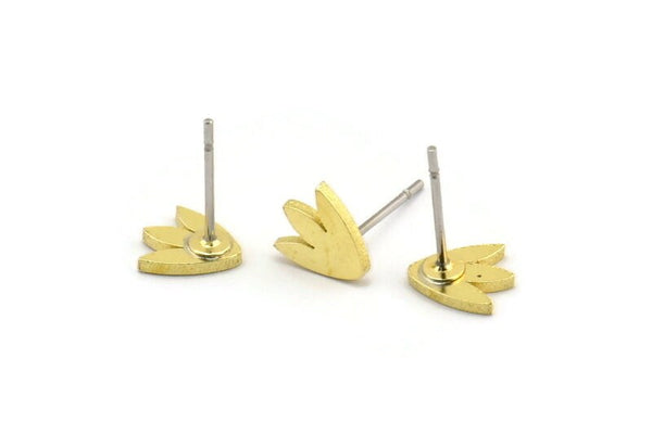 Brass Flower Earring, 12 Raw Brass Tulip Flower Shaped Stud Earrings (8x7x1mm) A3933