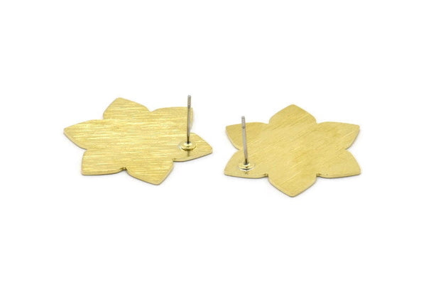 Brass Flower Earring, 2 Textured Raw Brass Flower Shaped Stud Earrings (28x25x0.80mm) M02535 A0074
