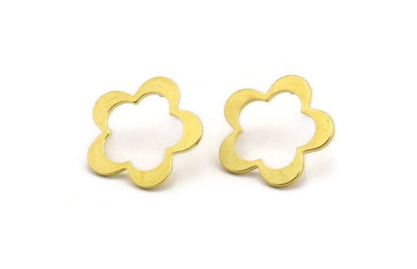 Brass Flower Earring, 4 Raw Brass Flower Stud Earrings (20x20x1mm) BS 1325