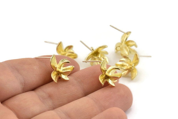 Raw Brass Flower Stud Earrings