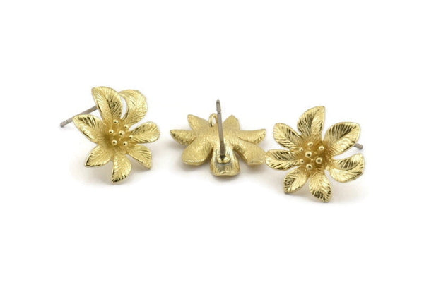 Brass Flower Earring, 6 Raw Brass Flower Stud Earrings (16x15mm) N1169