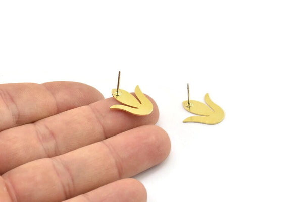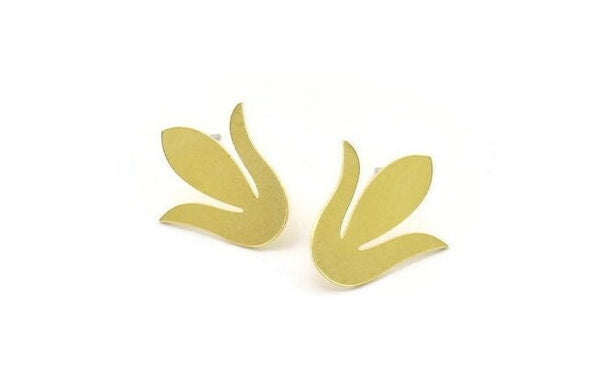 Raw Brass Tulip Flower Shaped Stud Earrings