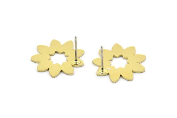 Brass Flower Earring, 8 Raw Brass Flower Shaped Stud Earrings (18x0.80mm) A2684