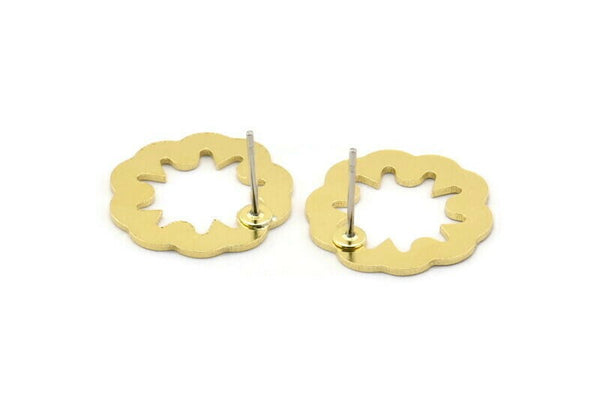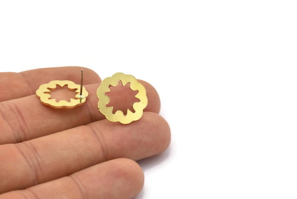 Brass Flower Earring, 8 Raw Brass Flower Shaped Stud Earrings (18x0.80mm) A2759