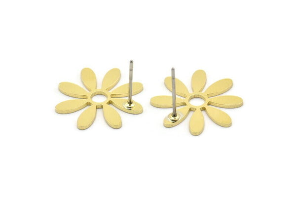 Brass Flower Earring, 8 Raw Brass Flower Shaped Stud Earrings (18x17x0.80mm) A2704