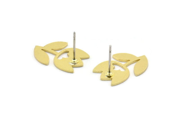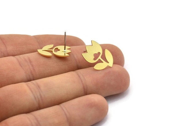 Raw Brass Tulip Flower Shaped Stud Earrings