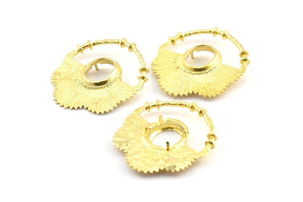 Brass Flower Pendant, 2 Raw Brass Elegant Semi Flower Earring Findings With Pad Setting (36x32mm) BS 1907