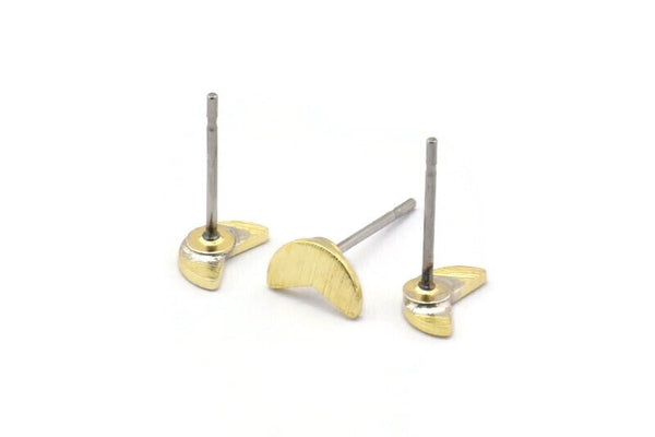 Brass Geometric Earring, 12 Textured Raw Brass Tiny Pizza Slice Shaped Stud Earrings (7x4x0.80mm) M02355 A0470