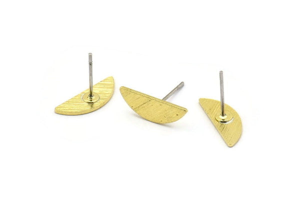 Textured Raw Brass Tiny Semi Circle Stud Earrings