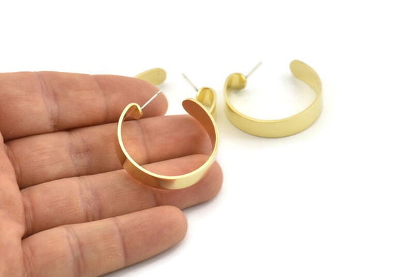 Raw Brass Circle Stud Earrings