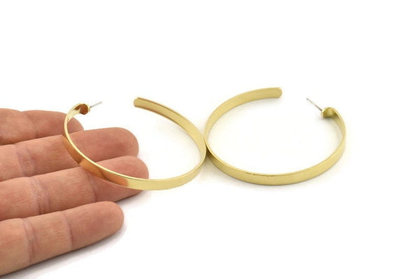 Brass Geometric Earring, 2 Raw Brass Circle Stud Earrings (54x4.5x1mm) N1247
