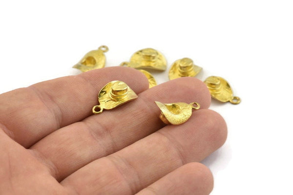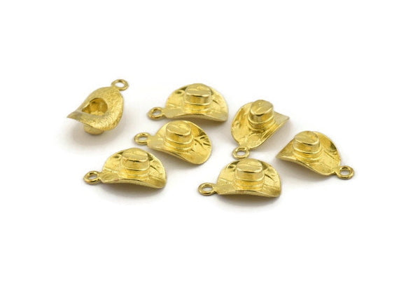 Raw Brass Cowboy Hat Charm Earrings With 1 Loop