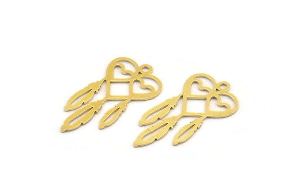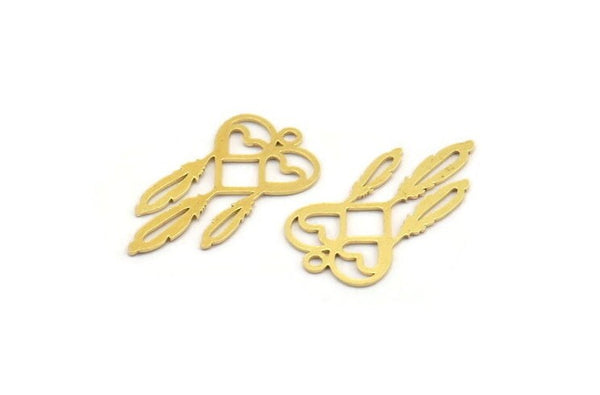 Brass Heart Charm, 24 Raw Brass Heart And Wings Charms With 1 Hole (27x14x0.60mm) A4679