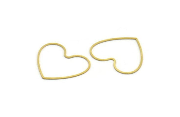 Brass Heart Charm, 24 Raw Brass Heart Connectors, Findings (30x27x0.60mm) A6637