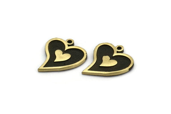 Brass Heart Charm, 4 Raw Brass Heart Charms With 1 Loop, Black Painted Brass Charms, Findings (18x15x1.5mm) N2384