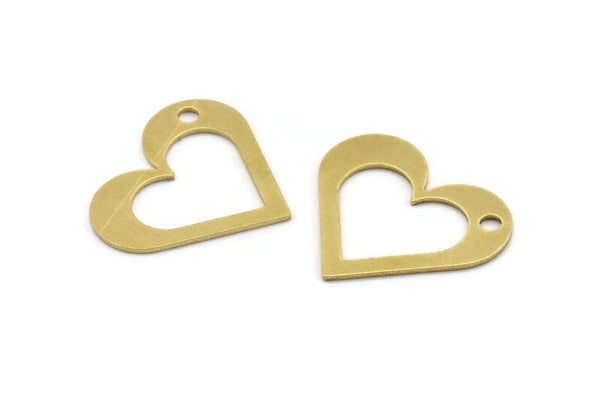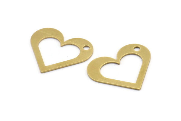 Brass Heart Charm, 8 Raw Brass Heart Charms With 1 Hole (31x27x1mm) A3061