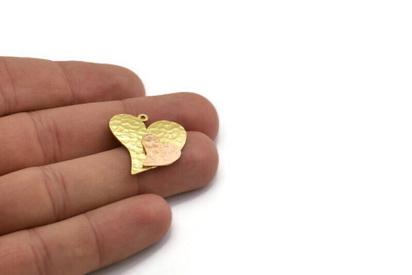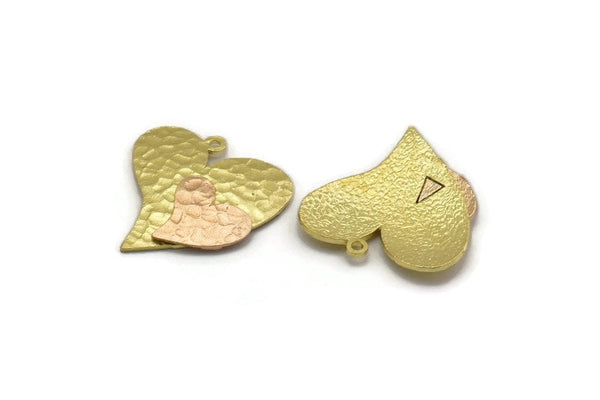 Brass Heart Charm, Raw Brass And Raw Copper Heart Charm With 1 Loop, Copper Charms, Mixed Material Findings (24x24x3mm) N1791