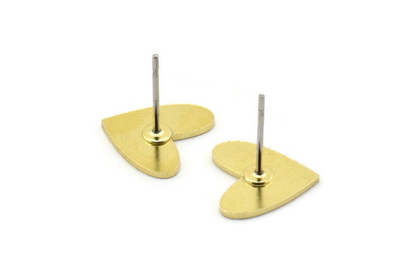 Brass Heart Earring, 10 Raw Brass Heart Shaped Stud Earrings (11x12x0.80mm) A2629